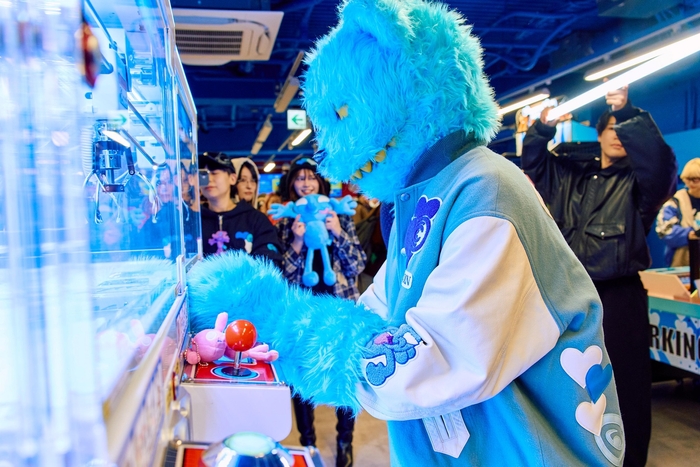 コラボグッズはBIGぬいぐるみ、マスコットぬいぐるみ、フェイスクッション、ラバーマスコット、ミニフィギュア、シリコンポーチ、ステンレスタンブラーセットの計7点を展示。特に「白井さん」のBIGぬいぐるみは会場に集まったゲストから大好評となり、即時品切れになりました。また、クレーンゲームはCOIN PARKING DELIVERYデザインの特別仕様で、現在GiGO渋谷、GiGO大阪道頓堀本店のみに設置されています。