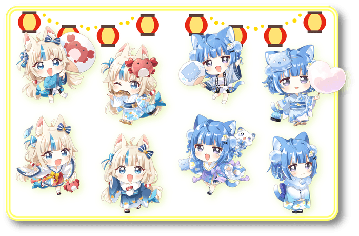 2025年にデビューしたVTuber、Sameko Sabaと海月雲ろあが、初めてコラボレーションします。本イベントでは、凍咲しいな先生・なもり先生のイラストを使ったオリジナルグッズの販売に加え、二人の等身大スタンディと祭りをテーマにした写真が撮れるフォトスポットや、『ひもくじ』『わなげ』を体験して景品を入手できる屋台(有料)など、見て・遊んで・集めて・楽しめる内容が盛りだくさん。ファン必見の特別な祭り空間をお楽しみください。