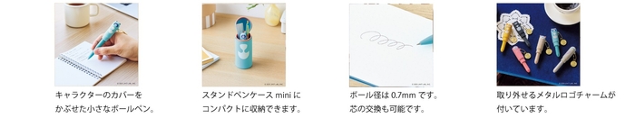 シリーズ設定は、「株式会社LIHIT LAB.」の前身である「リヒト産業株式会社」が設立間もない1950年代。昭和レトロの空気が漂う小さな喫茶店「喫茶プニラボ」で、ちょっと無愛想なマスター「ブチ」をはじめとする日本特有の可愛らしいキャラクター達がのんびり思い思いの時間を過ごします。そんな世界観やキャラクター個性をモチーフにした「スタンドペンケース」や「スタンドペンケースmini」、「ミニポーチ」、「ミニボールペン」は、日常使いに便利なアイテムで、使うたびに個性豊かなキャラクター達の表情に癒しを感じていただけるラインナップです。