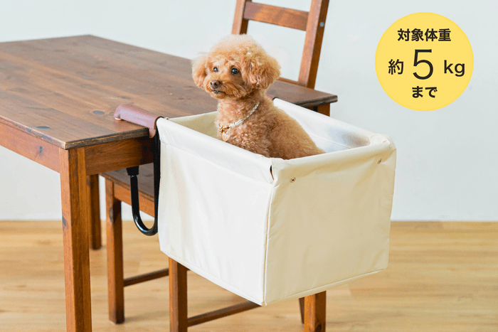 そんな声から生まれたのが、テーブルに取り付けることで小型犬・猫のための快適な“指定席”をつくれるペットチェアです。