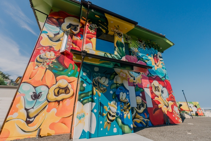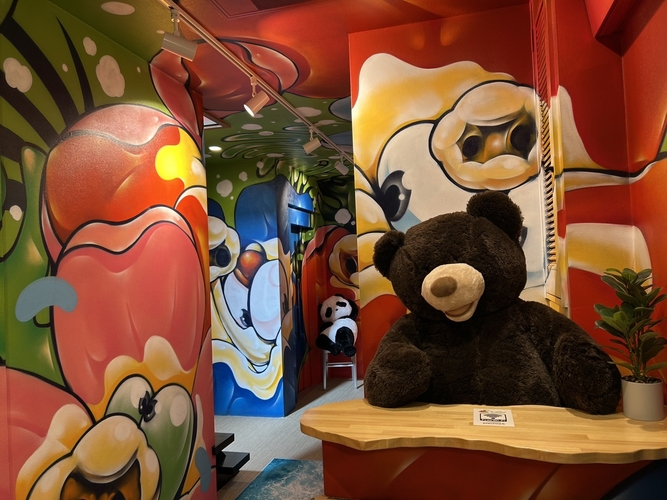 壁面には、キャラクター表現を得意とし国内外で多方面に活躍する広島県出身のアーティストKAC氏が、空間全体を彩る色鮮やかなスプレーアートを手がけています。