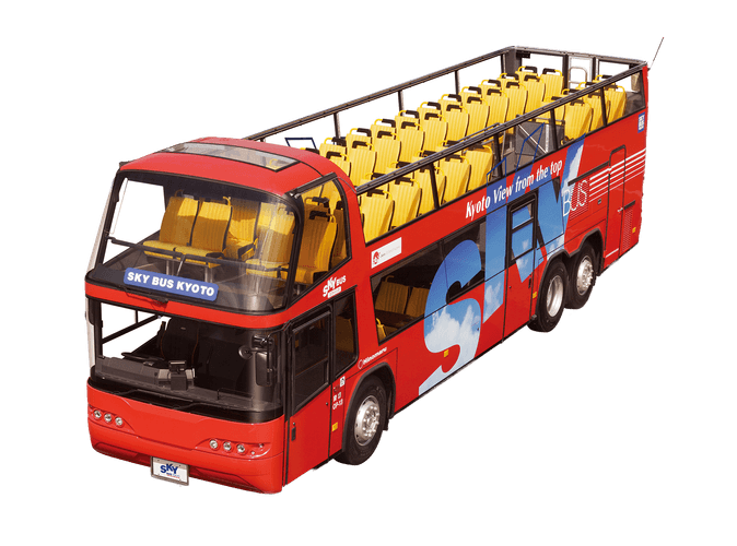 屋根のない開放的なバスで比叡山ドライブウェイを走行。琵琶湖と京都市街を眼下に、比叡山の清々しい風と新緑を全身で浴びる、非日常の移動体験。