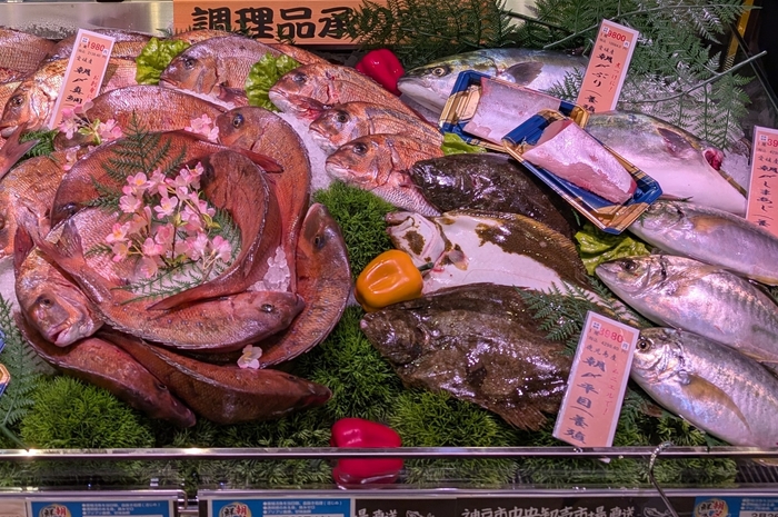神戸市場で出荷当日の朝に活〆した新鮮な生魚を店舗に直送。午前中は丸魚で、午後は調理しやすい切り身や短冊にしてご提供いたします。対面調理場で調理も承ります。
