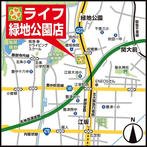 店 名:ライフ緑地公園(りょくちこうえん)店