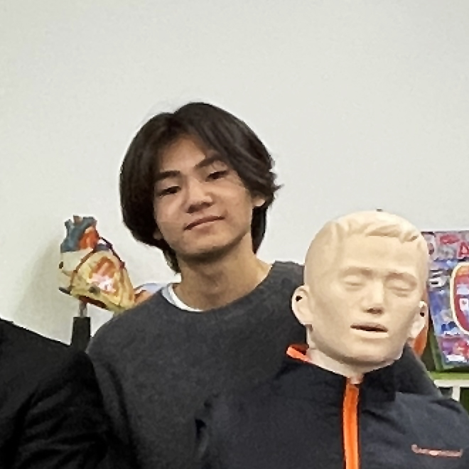 安藤君は昨年、類学舎が同ミュージアムと現役消防士の方々を招き企画した子ども向けのAED講習イベントに出席し、命の大切さを学びました。以来、「命の大切さを多くに人に知ってほしい」という思いを心に、AED使用普及の活動をスタート。AEDの正しい使い方と救命講習も行っているAEDミュージュアムの活動を手伝ってAEDの扱いを勉強したり、救急救命士の方から心肺マッサージなどを習ったりしています。最近では、自分と同じく類学舎に通う子どもたちや保護者向けてAED講習会を開催したりしています。