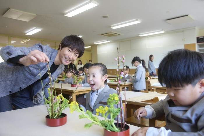 本プロジェクトは、京阪沿線で“まちを元気にする”活動を展開する方々を「おけいはん」としてクローズアップし、共創を通じて地元への誇りや愛着を醸成していく取り組みです。今回のプロジェクトでは、伝統文化を継承し次世代へと繋ぐ活動をされている、華道「未生流笹岡」の家元・笹岡隆甫(ささおか りゅうほ)氏に「おけいはん」としてご登場いただきます。笹岡氏が次世代へいけばな文化を伝える真摯な姿をノートルダム学院小学校で撮影し、ポスターを制作いたしました。