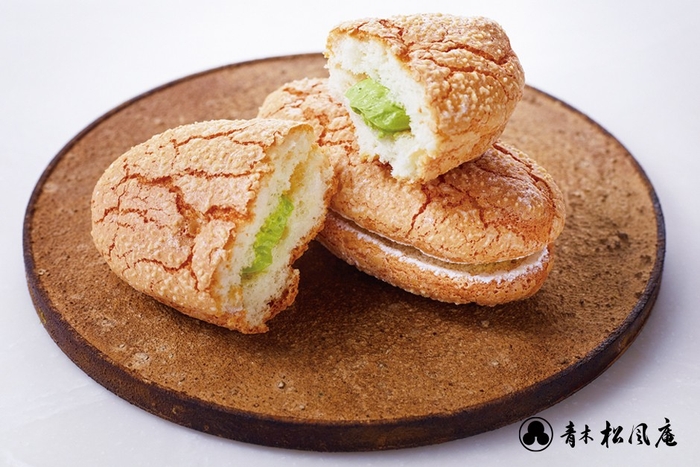 宇治抹茶とホワイトチョコ、バターを合わせた抹茶クリームをサンドした、季節限定商品です。