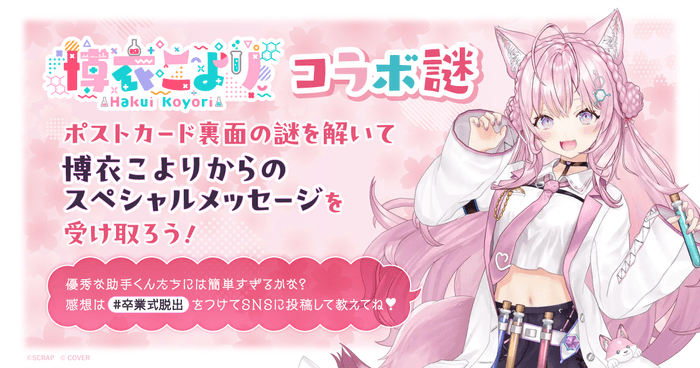 全世界で累計1,700万人以上を動員しているリアル脱出ゲームを企画制作する株式会社SCRAP(本社:東京都渋谷区、代表:加藤隆生)は、開催中のリアル脱出ゲーム『空白の卒業式と、最後の嘘。』において、2026年3月31日(火)にホロライブ所属VTuber「博衣こより」さんとのコラボレーション公演を開催し、盛況のうちに終了したことをお知らせいたします。