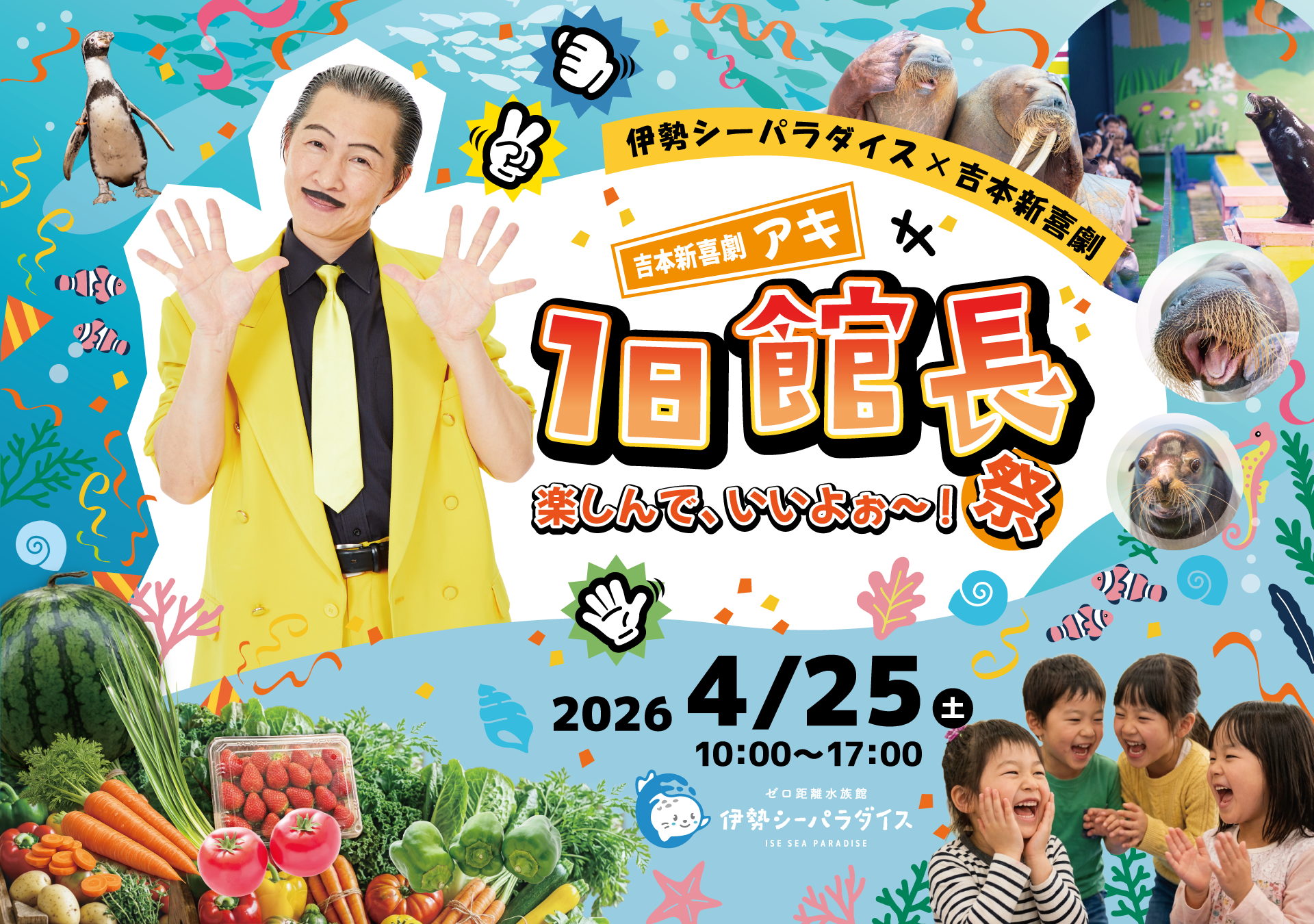 三重県伊勢市にある「ゼロ距離水族館 伊勢シーパラダイス」および「伊勢夫婦岩めおと横丁」では、2026年4月25日(土)、吉本新喜劇で活躍するアキさんをゲストに迎えた特別イベント「楽しんで、いいよぉ~!祭」を開催いたします。