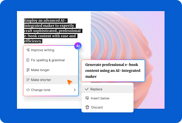 また、閲覧者側もAIアシスタントを活用することで、デジタルブックの内容を要約したり、掲載内容に関する質問を行ったりすることが可能です。