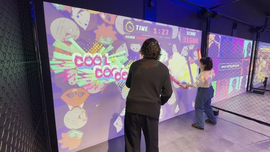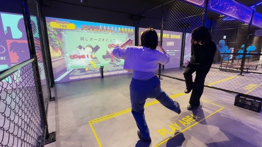 スクリーンに現れるカプコンのキャラクターと同じポーズをとって壁を抜けるアクティビティゲーム!