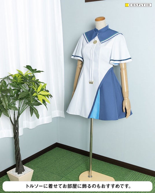 公式設定をもとに女子制服のシルエットや構造を再現することはもちろん、印象的な紺色の生地を染め上げるなどオフィシャル監修のもと忠実に再現。女子制服 ループタイについても、金属パーツをオリジナルで作り起こすことでしっかりと存在があり、金メッキ加工を施すことで高級感ある仕上がりになりました。コスプレ以外にも普段着に合わせてもご使用いただけます。
