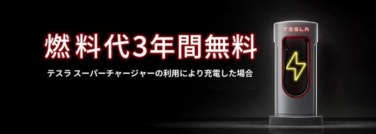 購入特典:テスラ スーパーチャージャーを利用した充電料金が3年間無料*1